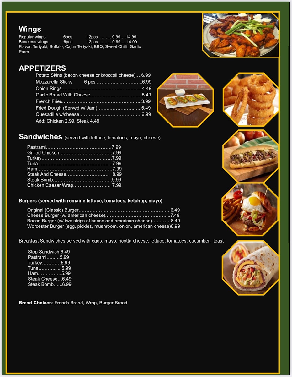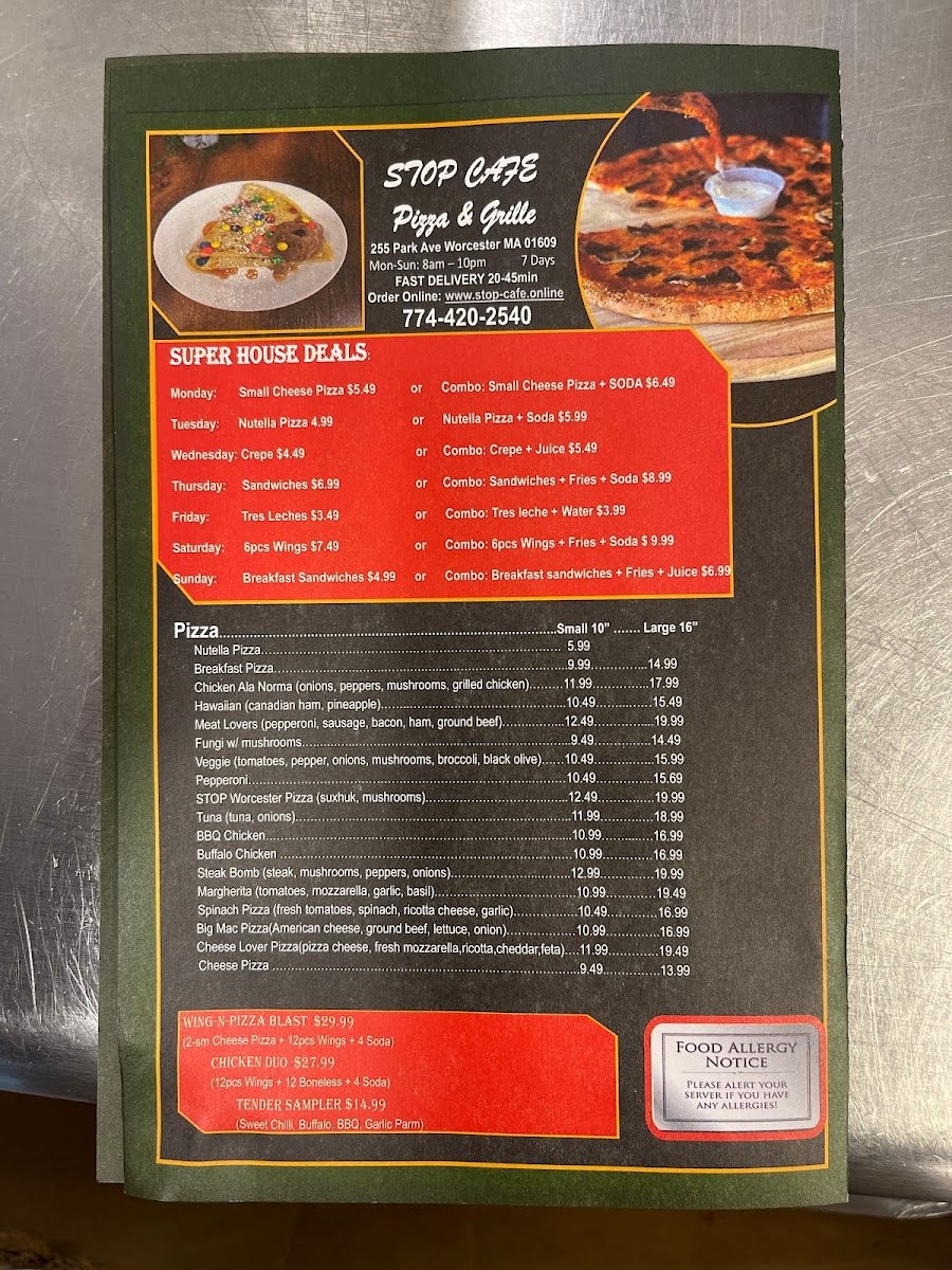 Welcome to STOP Cafe Pizza & Grille, a hidden gem nestled in Worcester, MA, where culinary delight meets a cozy atmosphere. This charming caafe doesn’t merely serve food; it offers a carefully curated menu designed for a delectable experience. From their mouthwatering STOP breakfast sandwich bursting with flavors to exquisite crepes like the indulgent Nutella delight, there's something for everyone.